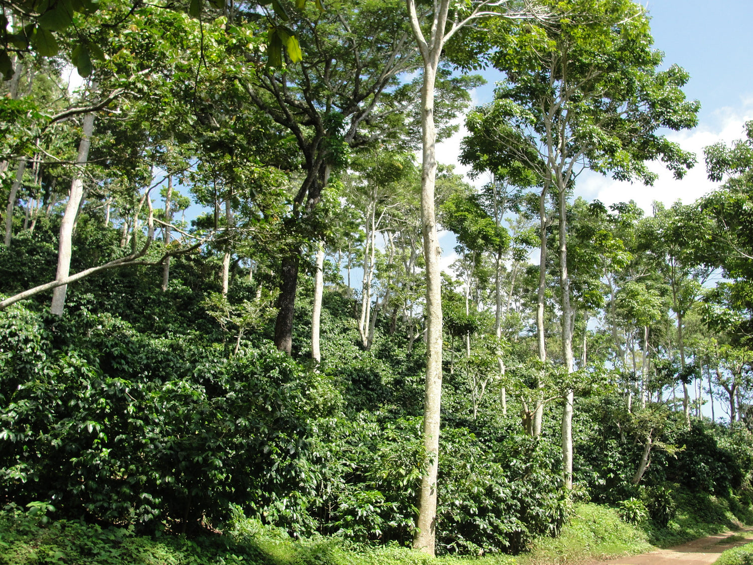 El cultivo bajo sombra crea microclimas estables: temperaturas moderadas, suelos frescos y mayor biodiversidad que protege el ecosistema. El ciclo de lluvias marca el ritmo perfecto: agua abundante para crecer y una estación seca que favorece la maduración y el secado.